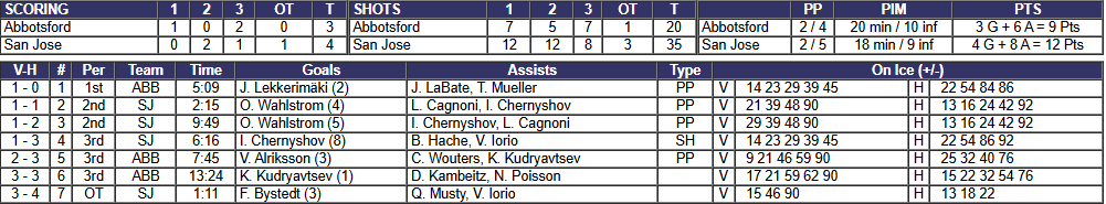 Abbotsford goal – 1-0 – Jonathan Lekkerimäki from Ty Mueller and Joseph Labate