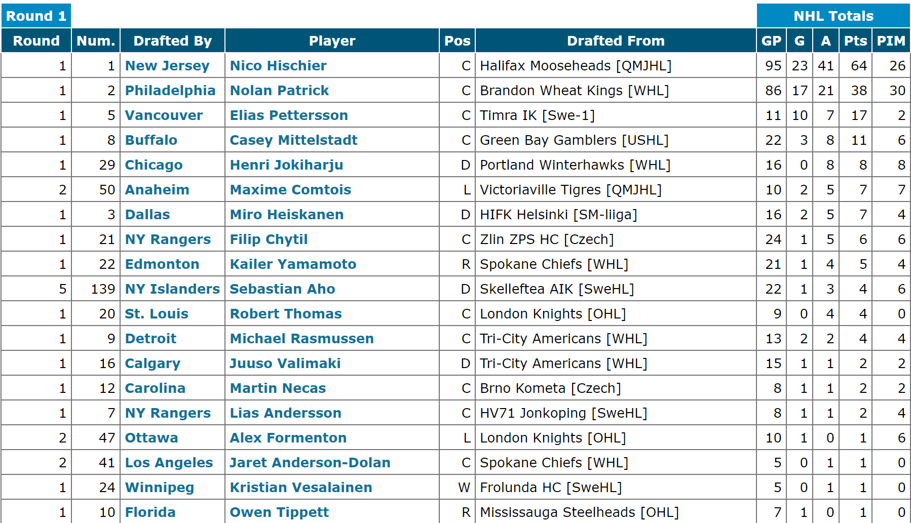 3. Canucks fans understandably can’t get enough Elias Pettersson stats, so here’s another for you: In just 11 games, Pettersson has become the third-most productive player from the 2017 draft class, behind only top two picks Nico Hischier and Nolan Patrick. I’d imagine the Glass/Mittelstadt/Vilardi truthers may already be regretting speaking too soon.