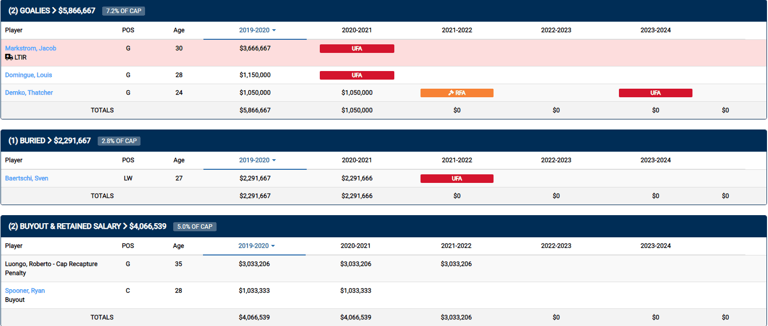 On top of that, you can add $3.5 million for Micheal Ferland on the LTIR, $2.29 million for Sven Baertschi in the minors, $1.03 million for Ryan Spooner’s buyout, and a staggeringly unfair $3.03 million for Roberto Luongo’s cap recapture penalty.