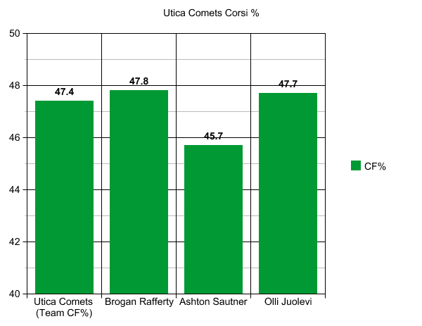 The Utica Comets were pretty horrible at controlling the shot share this season. With control of only 47.35% of attempted shots. They were even outshot at a higher rate than the Vancouver Canucks were with their control of 48.43% of attempted shots.