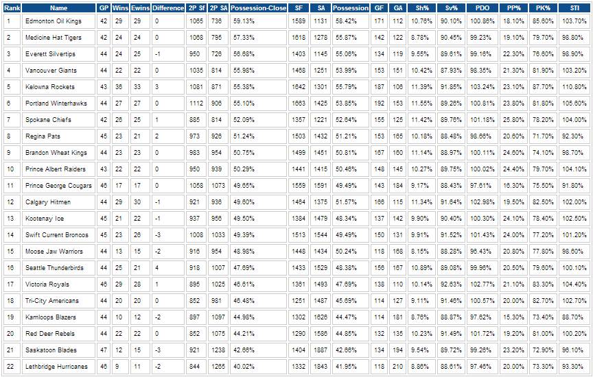 And with that in mind, let’s look at this week’s WHL fancystats, courtesy of Josh Weissbock: