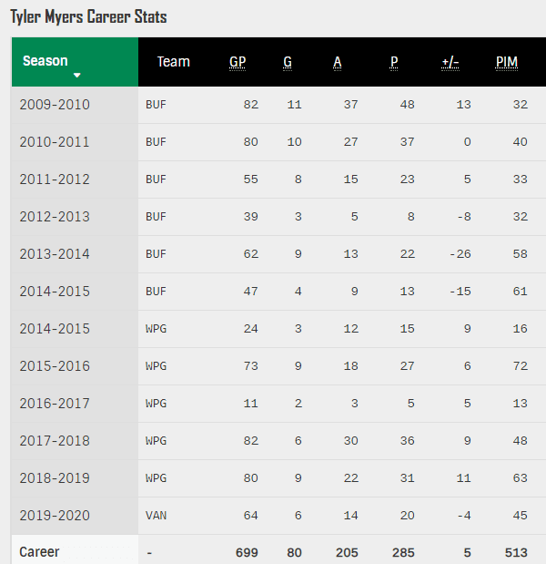 Tyler Myers has been essentially replacement level to bellow in 7 of his 8 past seasons.
