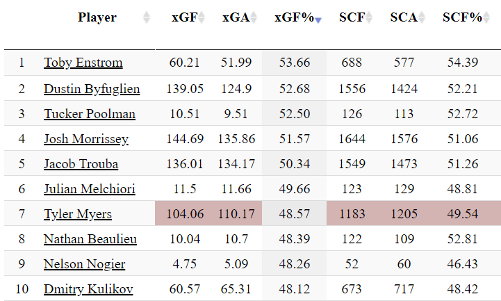 Tyler Myers Vs Advanced Stats