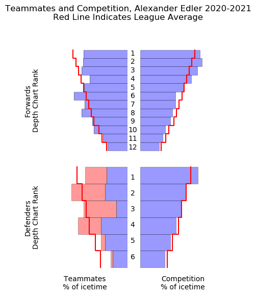 As per Micah Blake McCurdy of HockeyViz, Edler has also faced the toughest competition of any Vancouver defender, consistently being thrown out against top lines and whatever elite talent the opposition can muster up.