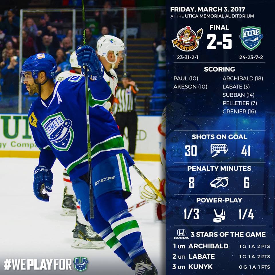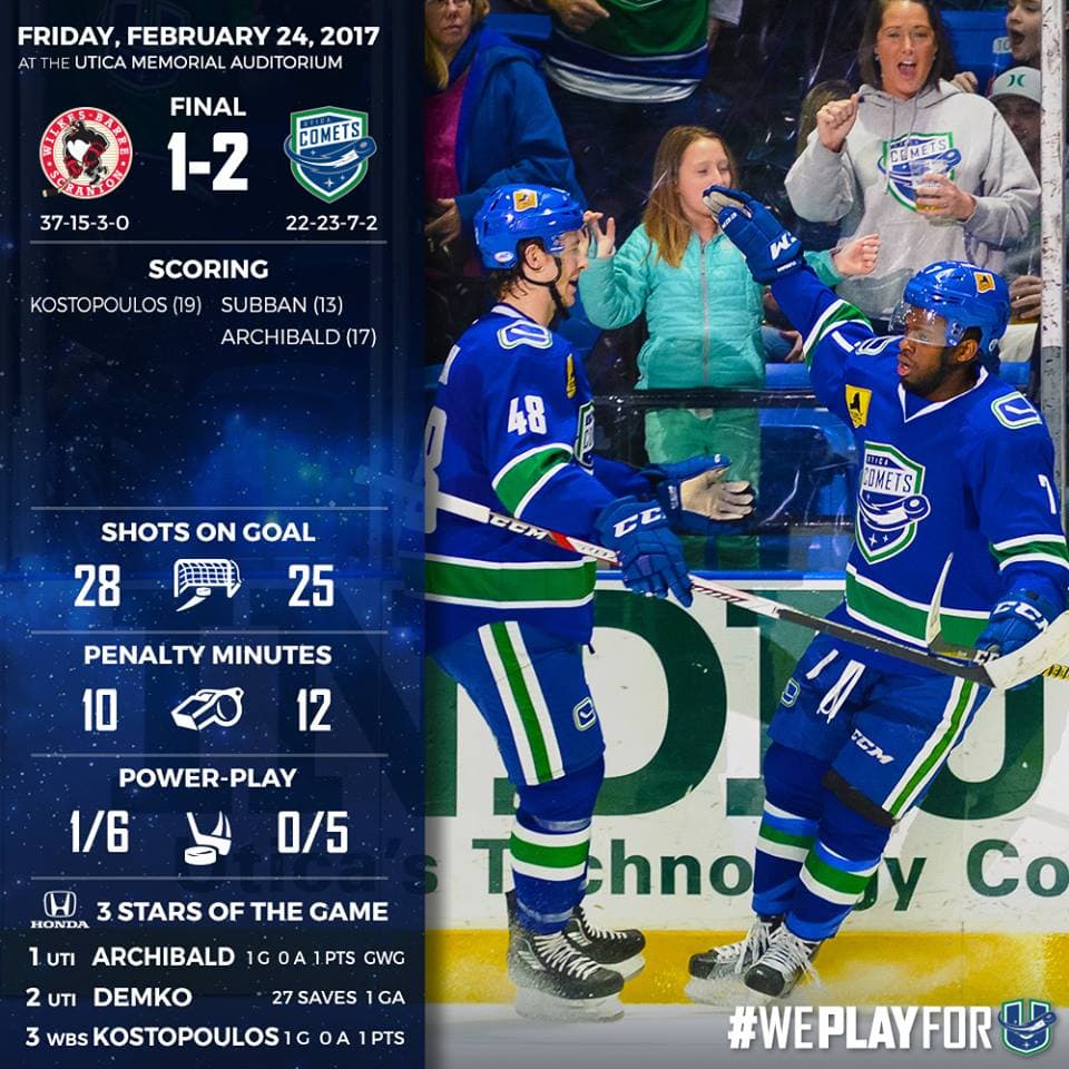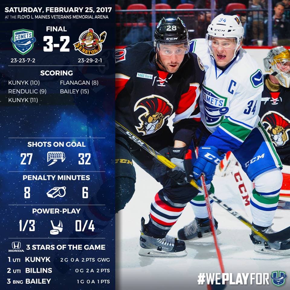 With last week’s NHL Trade Deadline taking up most of our time and site space, so we’re once again covering two weeks with one article. That works out fine, as the last two weeks have for the most part had a common theme with the Comets: winning.