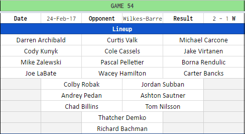 Friday, February 24th vs. Wilkes-Barre: 2 – 1 Win