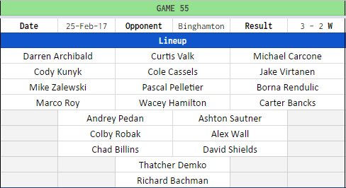 Saturday, February 25th at Binghamton: 3 – 2 Win