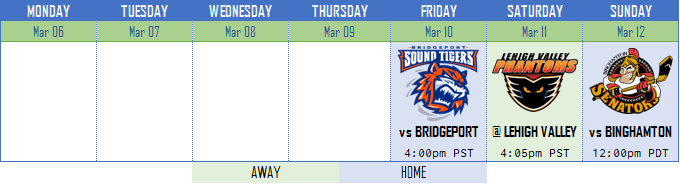 The Comets are heading into another three-in-three weekend, opening with tonight’s game at home versus the Bridgeport Sound Tigers, who they just beat last week as part of their five-game winning streak.