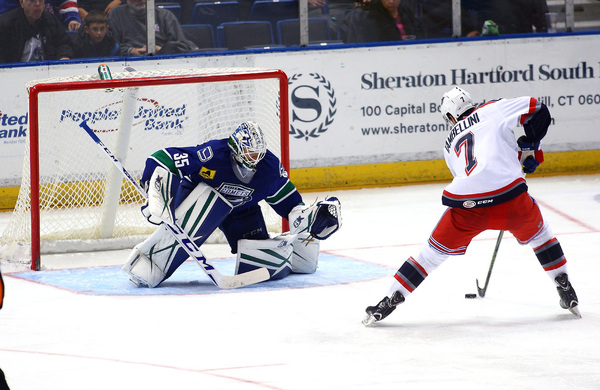The Utica Comets are still in search of their first win after dropping their second game of the season by the score of 3-0 to the Hartford Wolf Pack at the XL Center on Saturday night. Wolf Pack goaltender Magnus Hellberg pitched a 30-save shutout en route to his second win of the season.The home team kicked off the game’s scoring 8:20 into the first frame when Richard Nejezchleb potted his first goal of the season. Off of a three-on-two rush, Cannata turned aside Chad Nehring’s shot from the short side before Calle Andersson chipped the rebound to the slot for the eventual tally.The Pack doubled up their lead 7:35 into the third period. Adam Tambellini, on a breakaway, slipped a shot through the legs of Cannata for his second goal of the season. Brian Gibbons picked up an assist on the play.Nehring added an empty-net goal from center ice with 2:44 to play to put the game away.The Comets penalty-killing unit went a perfect three-for-three, running their season total to seven-for-seven. Joe Cannata made 25 saves in the loss.