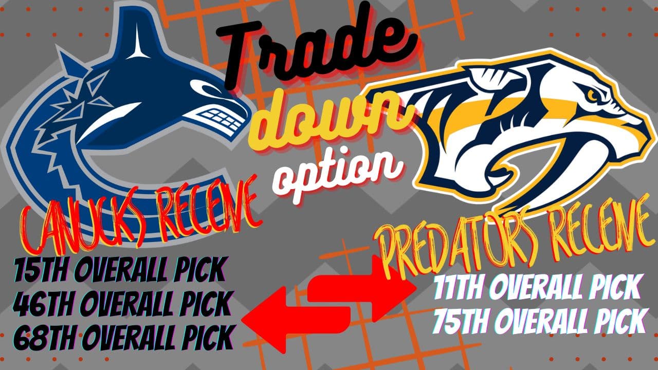 There are a couple of different trade-down options with the Nashville Predators but we are going to key in on one where the Canucks can still pick in the top 15 of the draft.