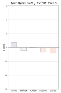 Of course, the blueliners contributed to the impressive save percentage, but it’s pretty obvious that Thatcher Demko played a larger role when looking at their respective isolated defensive impacts.