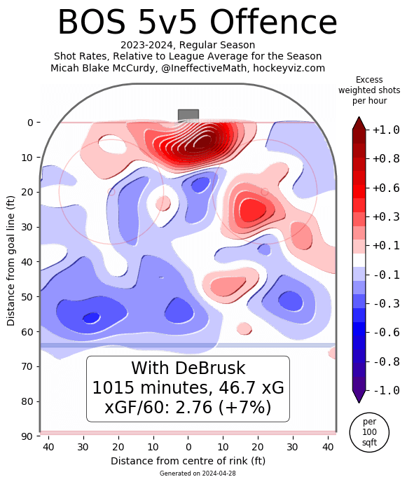 DeBrusk also has the kind of advanced stats profile – a 53.93% xG rate last year, and a 62.08% the year before – that suggests a further statistical breakout is absolutely still possible.