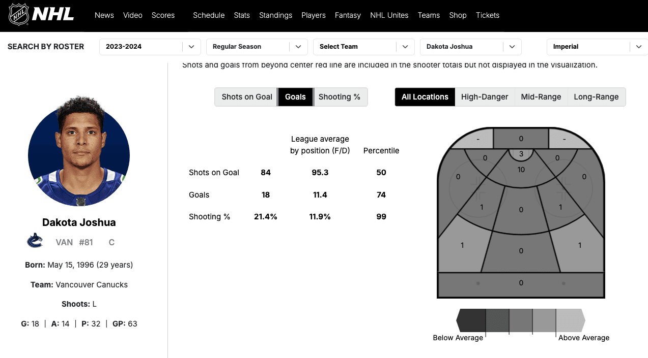 Both Joshua and Kane scored the majority of their goals at the net front. Which is expected given their frame and how they play the game.