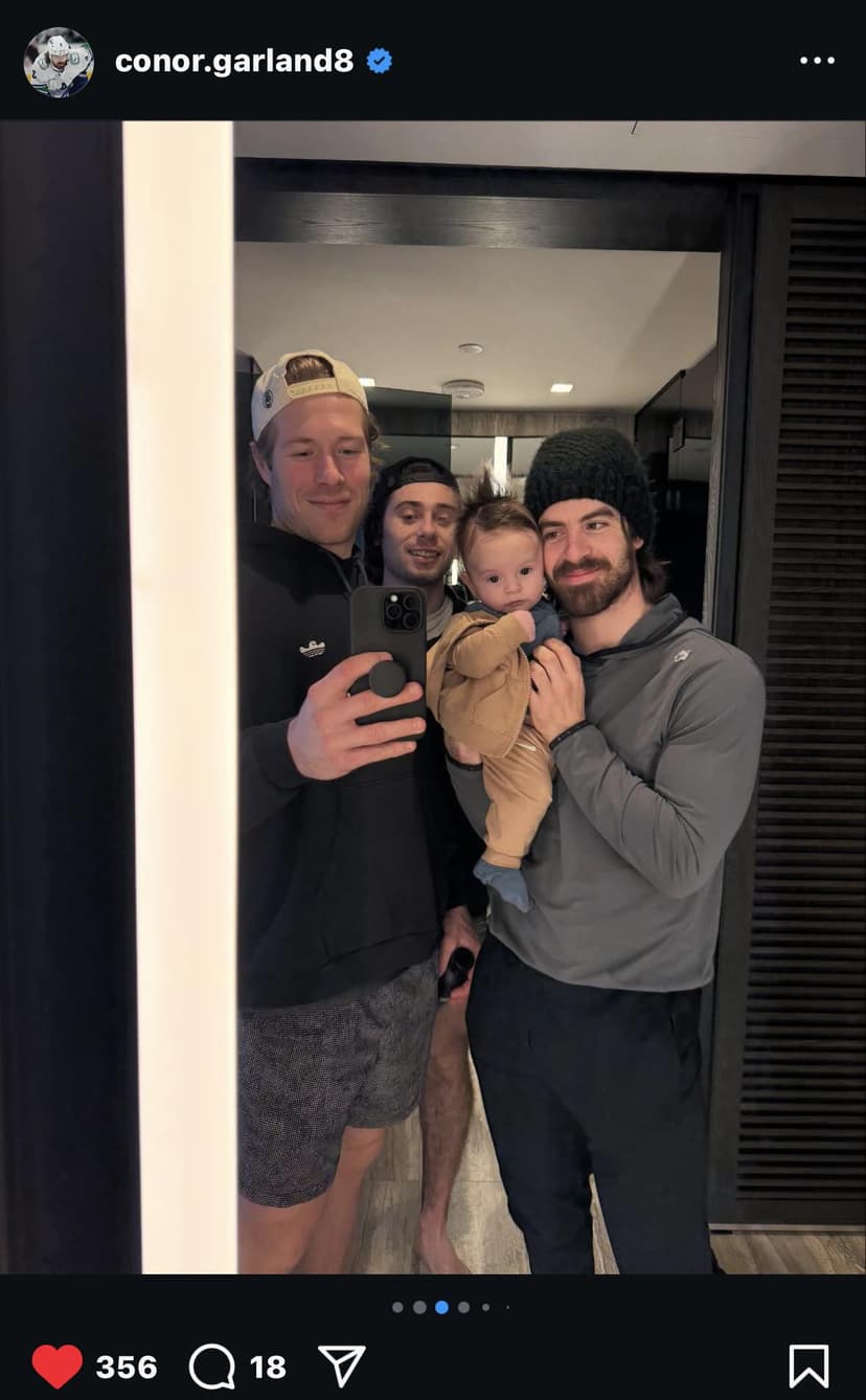 It’s no surprise that Hughes is close with all three players. He and Boeser have been described as ‘best friends’ at various times, and both of them have always seemed tight with Demko. Garland (partially) named his son after Hughes.