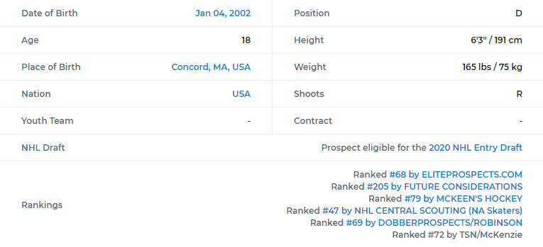 - Size with room to fill out, at 6’3″ but only 165lbs, he has a ways to go to grow into his frame and an extended development path with the Chicago Steel next season and then Harvard University after that will allow him to do just that
