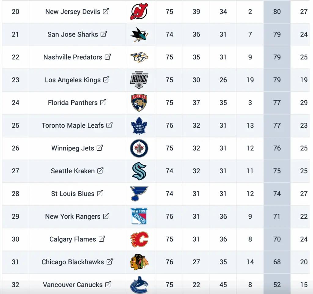 Meanwhile, the Canucks have a 16-point gap between them and 31st overall Blackhawks. This is what a masterful tank job looks like. No more mushy middle. No doubt about who the worst team in the NHL is. The Canucks are number one.