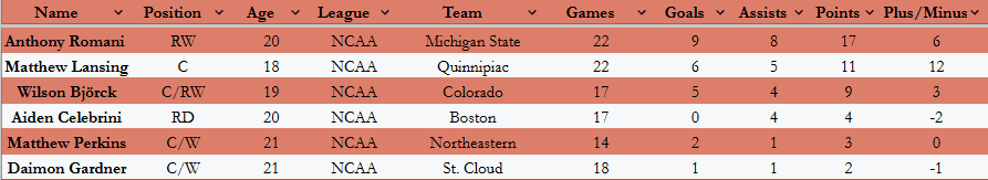 With another goal and assist, Anthony Romani continued his strong stretch, now recording points in six of his last seven games. His goal came via a slot deflection, bringing him to nine goals and 17 points in 22 games. Although his deployment briefly increased during the holiday schedule, he has since returned to a third-line role at Michigan State. The important part is that he’s finding rhythm and a way to contribute at this level.