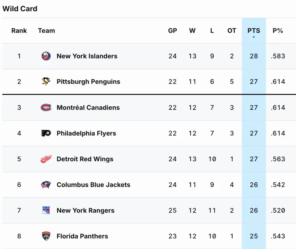 The Red Wings are in a slightly different but still similar enough spot as the Leafs. They started the season hot, spending a good chunk of time at the top of the Atlantic Division standings. But as of today, Detroit in a logjam of Eastern Conference teams vying for playoff positioning: