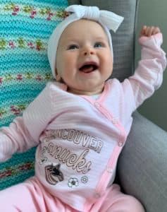 I mean…as if this little Canucks fan isn’t melting your heart right now. Welcome, Phia!