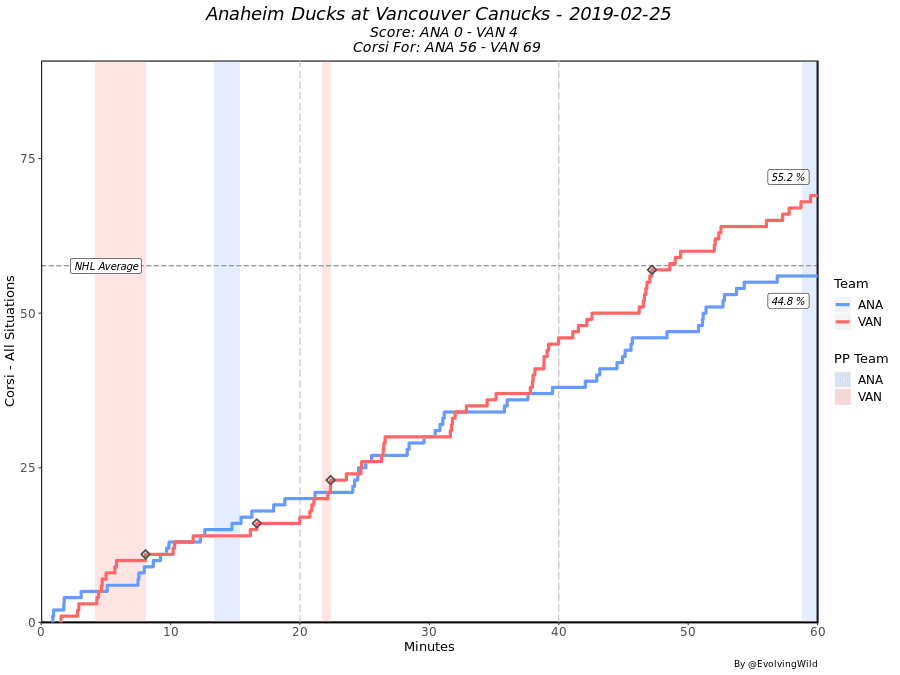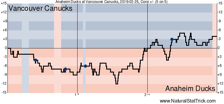 On face value, Vancouver came away with a convincing win, but it took an awfully long time for the data to reflect their better play. Again, I don’t want to rain on anyone’s parade, and I have a ton of positive things to say about tonight’s effort as well, but it’s just hard to get too excited about beating basically the worst team in hockey. And to require such great performances to do so. So let’s take all of the good news with a grain of salt.