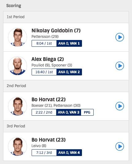 The one highlight of the period came in the form of a second Horvat goal at 7:12. With an awesome personal effort by the captain (but that’s none of my business), Horvat dived for the puck in front of Ryan Kesler and whipped home a pass from Leivo when Kesler was unable to regain control of the play: