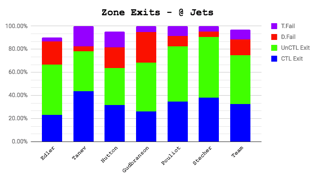 - Gudbranson, team low controlled exit rate, team high failure rate. I thought the healthy Guddy was supposed to be better? He’s somehow gotten worse.