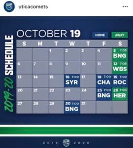 The Comets will play eight games in October, squaring off against five teams. They will start and finish their month against the Binghamton Devils and will also play them once more for good measure. Five of their first eight games will come against their North Division rivals, while the other three will see games against Atlantic Division foes.