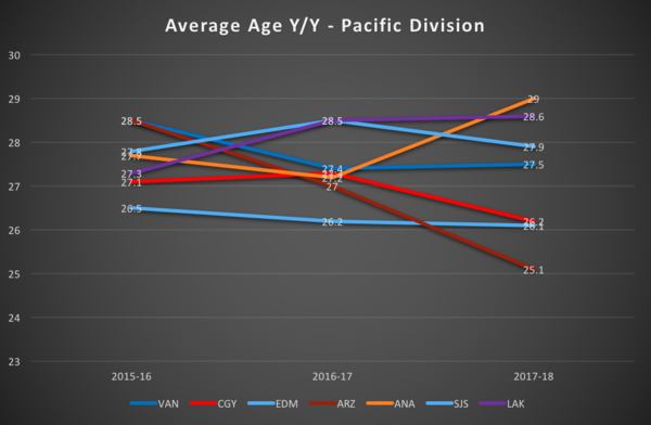 We can’t predict what the other teams will do – but for example, Arizona is shedding a lot of older players at the end of this season. If they decide to re-sign someone like Martin Hanzal, who will be 30 to start next season, then they will see some increases in their average age. Same theories apply to Calgary and Edmonton.