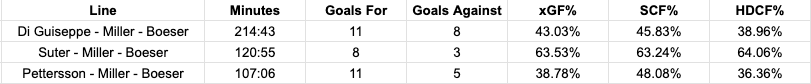 According to these numbers, Miller and Boeser performed the best when Suter was on their line. And of course, Pettersson-Miller-Boeser was the more fun and impactful trio on the ice, with goals like these:
