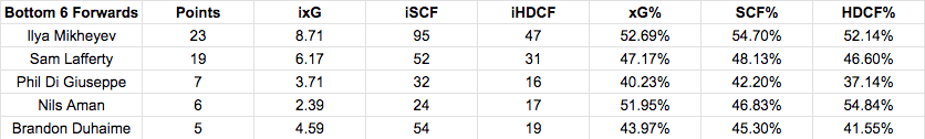 It would be unfair to include any Bains numbers, as he’s only played three NHL games and has yet to play 60 minutes at 5-on-5 for these stats.
