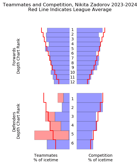 Zadorov doesn’t just find himself outside the top-four in terms of ice-time, but usually in terms of responsibility, too. He’s not one to matchup with opposing top lines very often, and in fact usually finds himself facing a less-than-league-average quality of competition. Much of the time, Zadorov is out there against bottom-six competition.