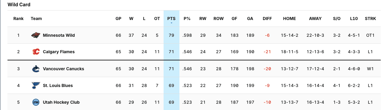 After these results, here are the updated Western Conference Wild Card standings as of Saturday, March 15: