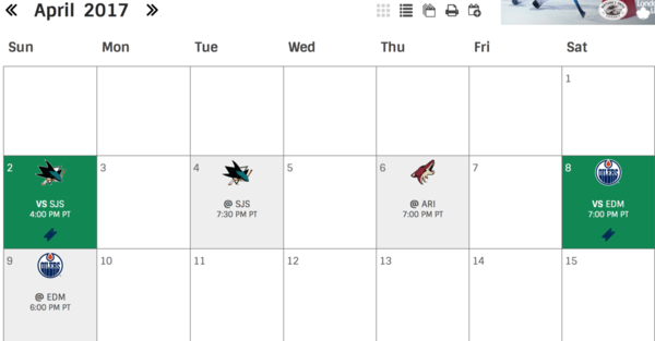 The Canucks schedule in April is as follows: