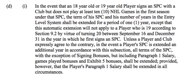 First off, we need to determine what ‘age-year’ they are in, which is stipulated in Section 9.2 of the NHL/NHLPA CBA: