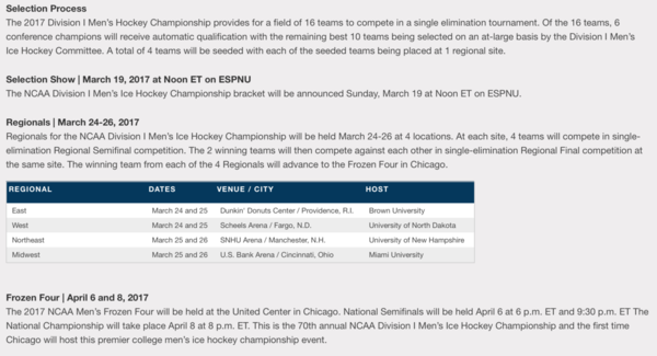 Given that, and since they are hosting the regionals, it’s not crazy to conclude they will be playing then. If they can get through, then they would be playing in the Frozen Four from April 6-8th in Chicago. The Semi-Finals are on April 6th, with the winners playing for the title on Saturday, April 8th.