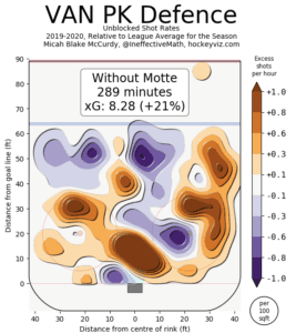 The latest Tyler Motte injury could be a bigger loss than seems. 4th line has been a mainstay Vancouver and has carried a shot attempt percentage well above 50% with Motte in the lineup. It’s early yet, but so far that clip has dropped off significantly without him. #Canucks